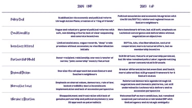 Although the EaP aimed to create greater differentiation, it did not address the identity and geopolitical issues of the region. Countries like Ukraine continued to find themselves in between the EU and Russia as well as facing domestic divisions and socio-cultural legacy. Several Ukrainians noted that the EU approach remained too technical, and too little focused on local conditions and regional heterogeneity. The emphasis on normative convergence rather than membership, and the residual sense of alienation and Eurocentrism, reinforced the impression that the EaP was merely a rebranded ENP, not a qualitative advance. It therefore struggled to be seen as a credible and effective policy tool capable of piercing the political complexity and strategic competition within the region.